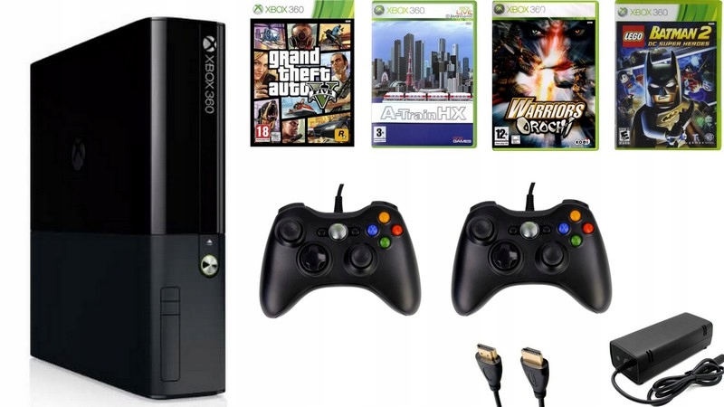 Konsola Microsoft Xbox 360 E 250GB w komplecie z dwoma padami i grami.