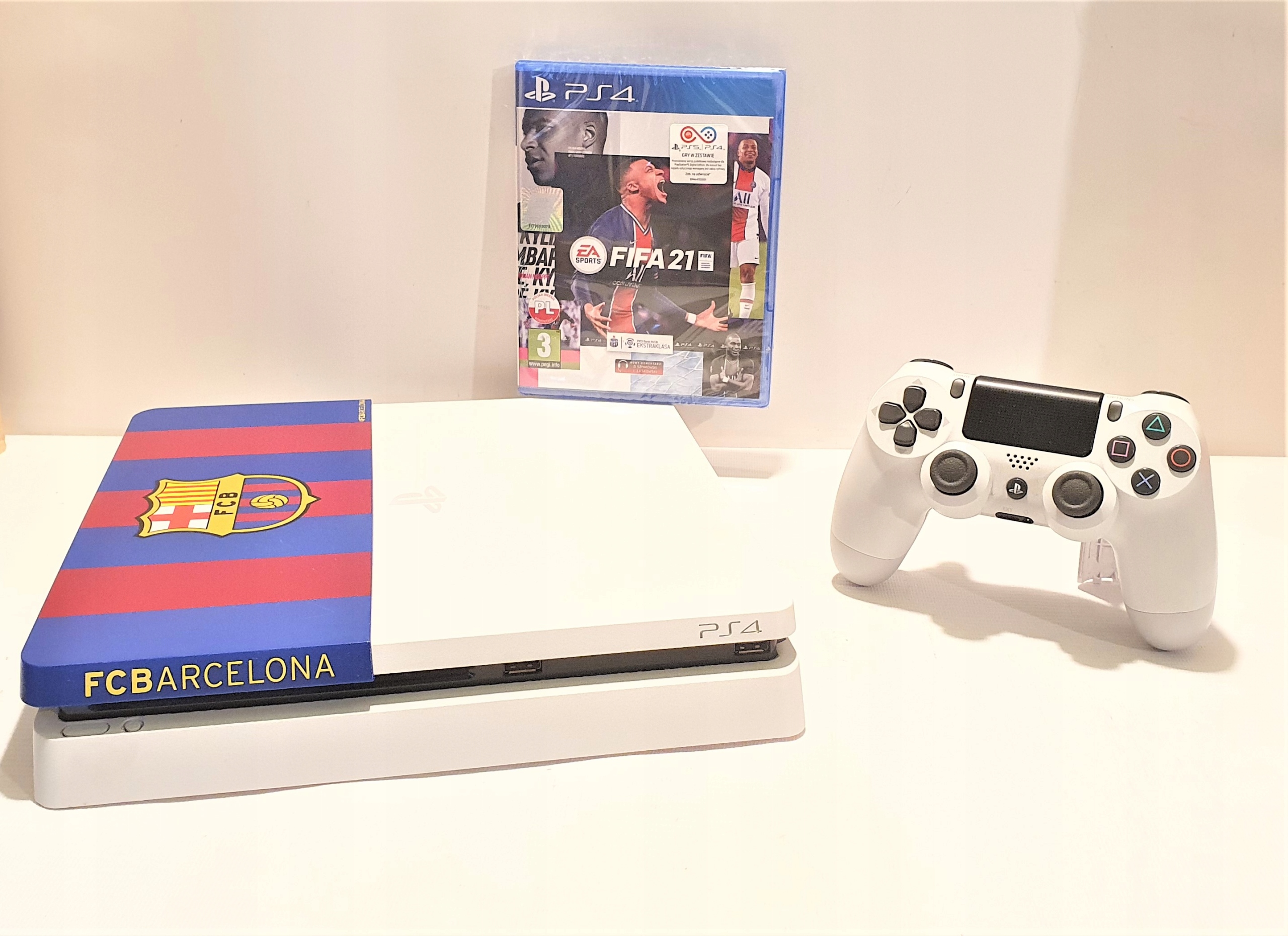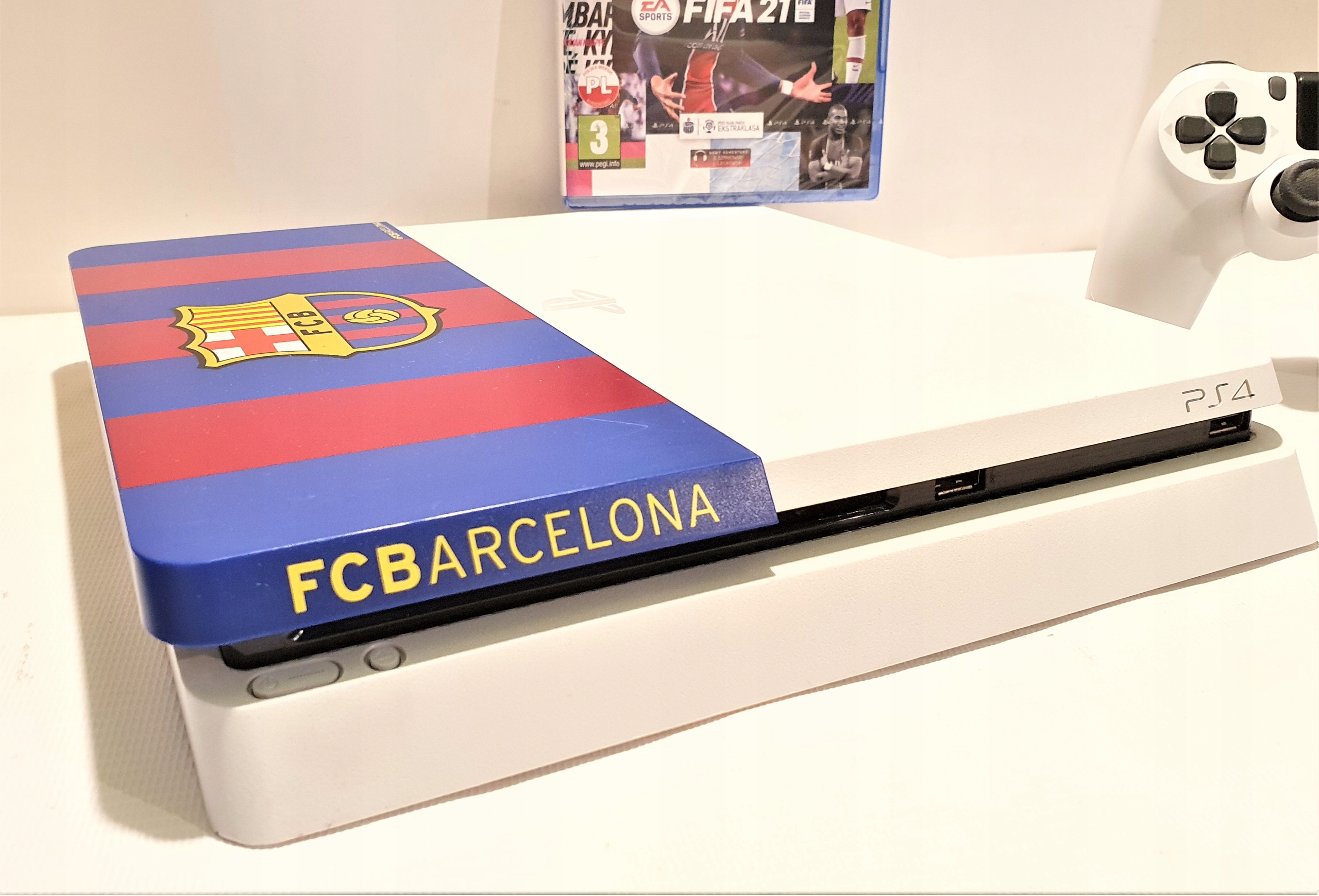 Kolor konsoli : „biały z nakładką FC Barcelona”