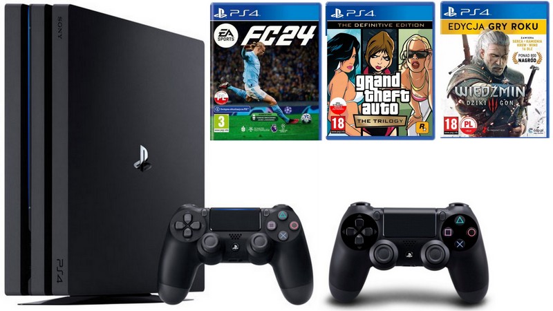 Sony PlayStation 4 Pro 1TB w komplecie z dwoma oryginalnymi padami oraz trzema nowymi grami !