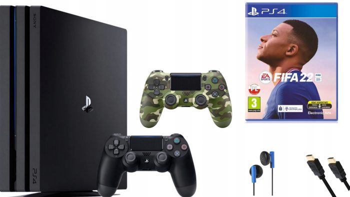 Konsola Sony PlayStation 4 Pro 1TB w komplecie z grą „FIFA 22″ w pełnej polskiej wersji językowej”.