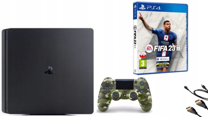 Sony PlayStation 4 Slim 500GB w komplecie z grą FIFA 23 w polskiej wersji językowej.