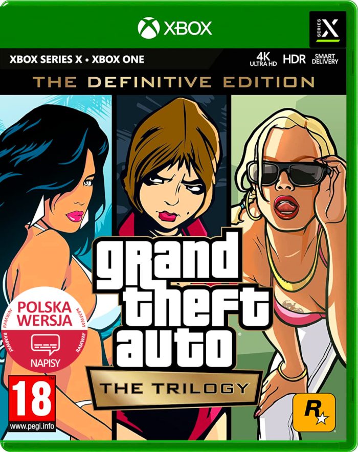 Trzy kultowe miasta, trzy wspaniałe opowieści. Zagraj w klasyki z trylogii Grand Theft Auto, które zdefiniowały cały gatunek gier: Theft Auto III, Grand Theft Auto: Vice City i Grand Theft Auto: San Andreas. Tytuły te zostały odświeżone dla nowej generacji konsol i zawierają szeroki wachlarz ulepszeń, w tym nowe otoczenie oraz efekty świetlne, tekstury w wysokiej rozdzielczości, zwiększony dystans renderowania obiektów, sterowanie i celowanie w stylu Grand Theft Auto V, a także wiele więcej. Wasze ukochane światy nabiorą rumieńców dzięki nowej głębi szczegółów.