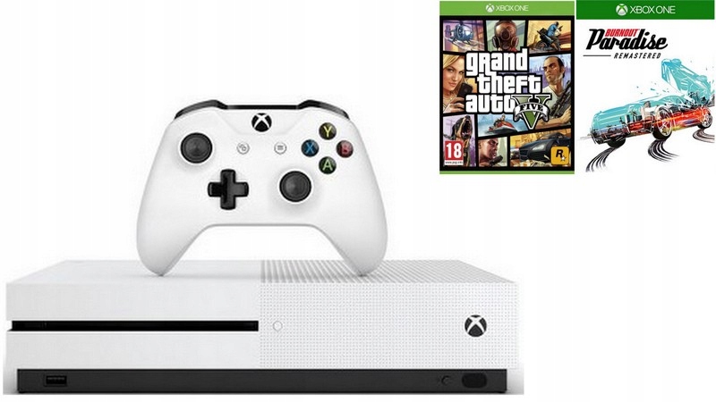 Xbox One S 500GB wraz z oryginalnym padem oraz dwiema grami w wersji pudełkowej.